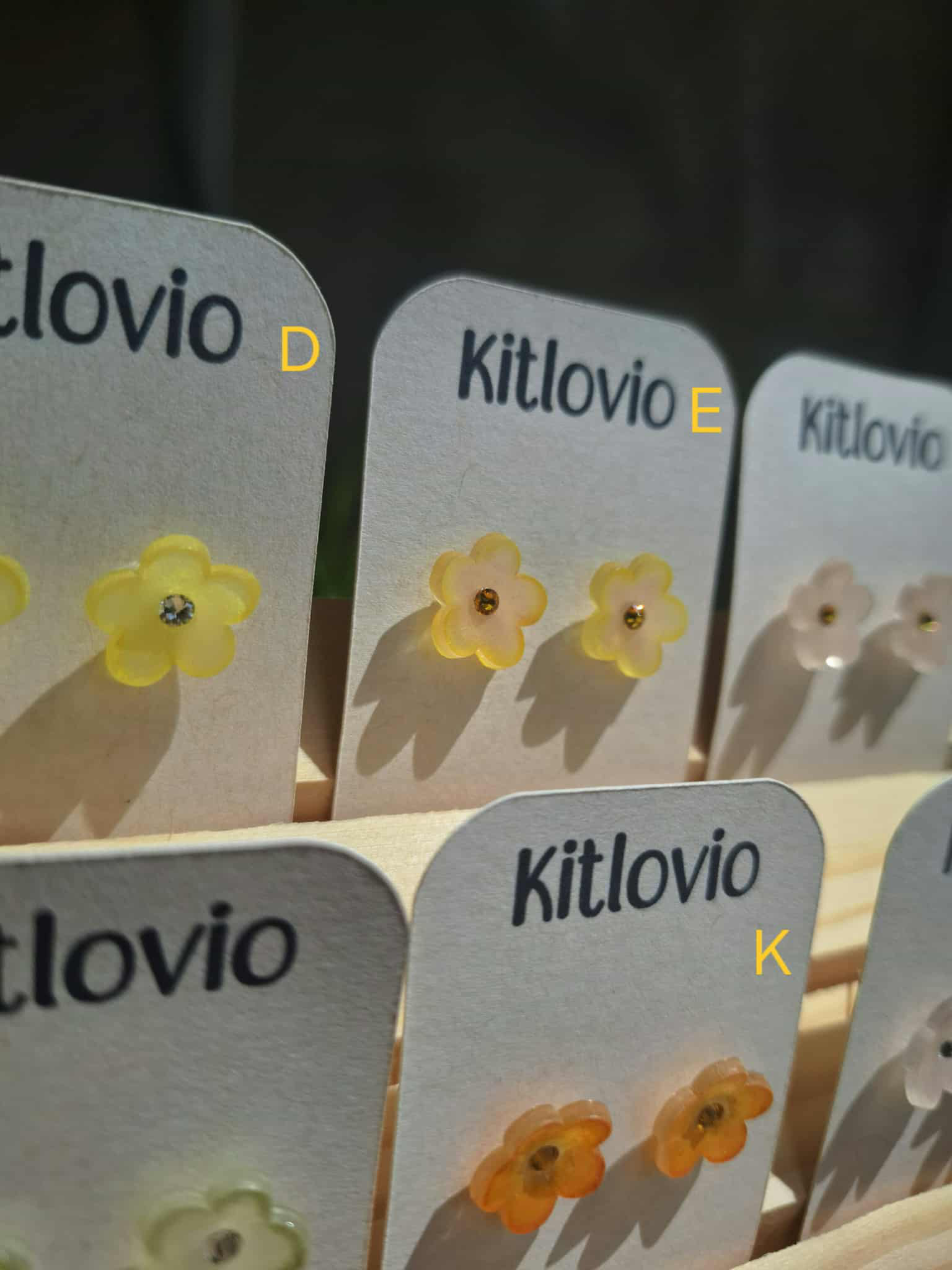 Earrings are made with shrink plastic and Resin. Pigment varies between printable ink, chalk pastels and Prisma pencils. Posts are made of .925 Sterling Silver with rubber backers.
